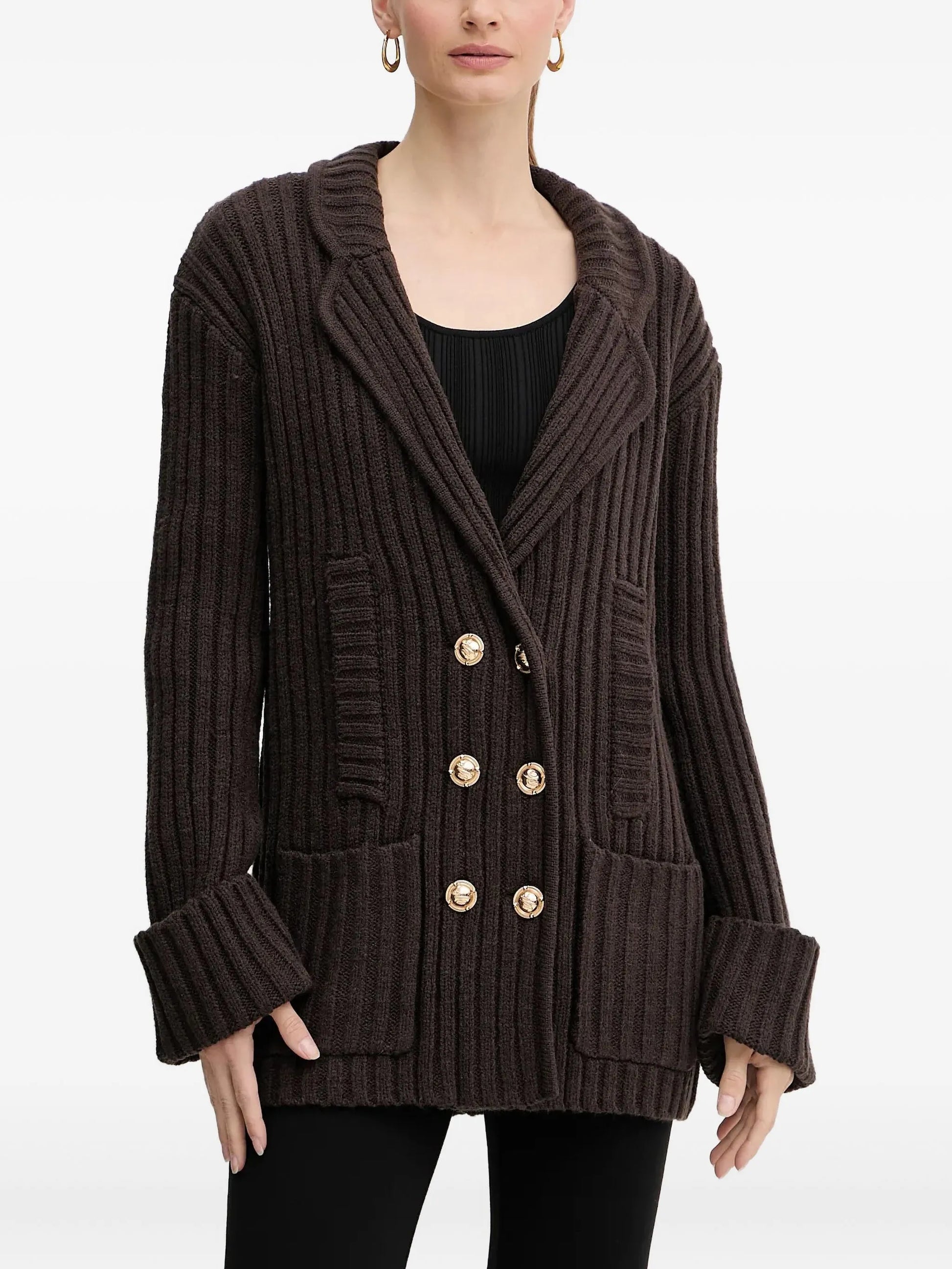 Caldo cardigan doppiopetto con reveres a lancia, lavorazione a coste e bottoni oro
