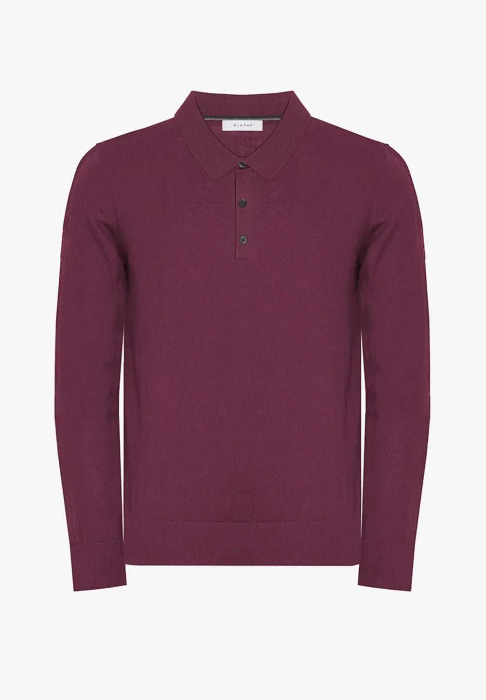 Polo a manica lunga in 100% lana merinos filato extra fine.